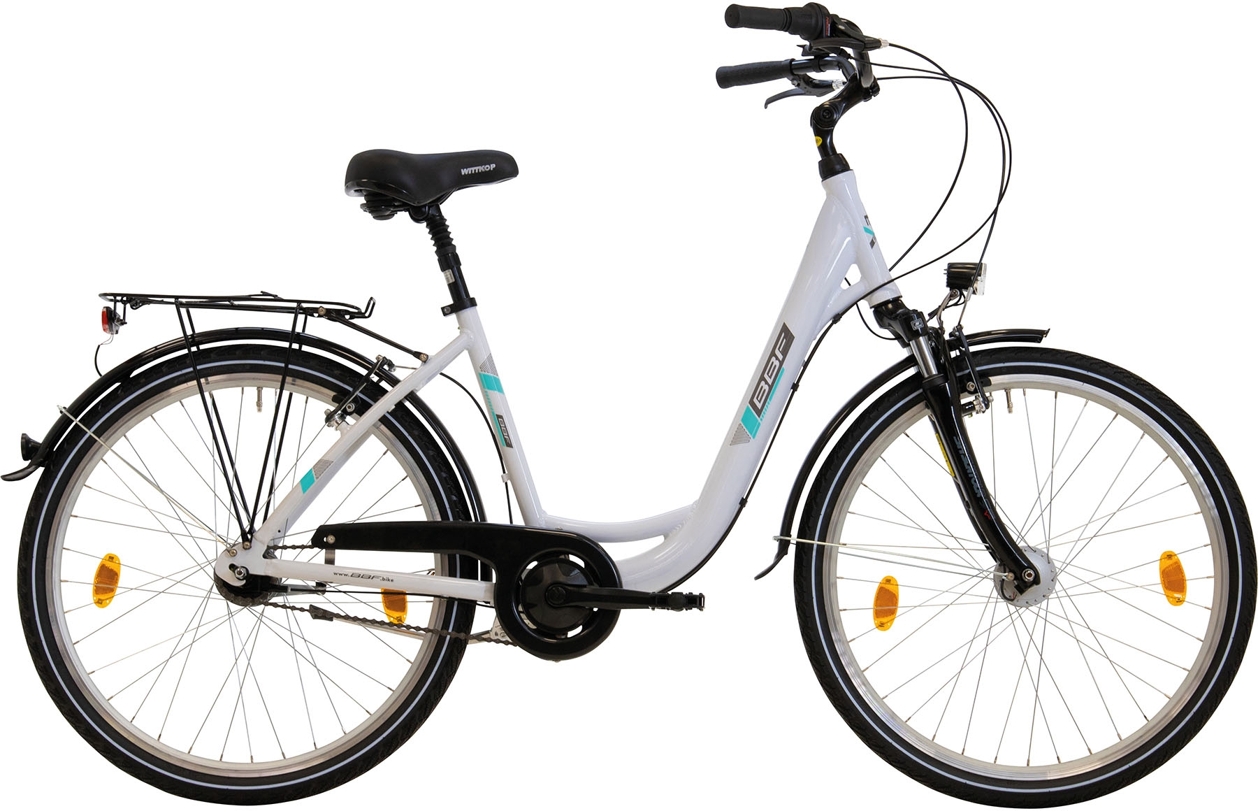 Beleuchtung: | STVZO-Ausstattung/ Nabendynamo/ LED-Scheinwerfer und AXA LED-Standrücklicht